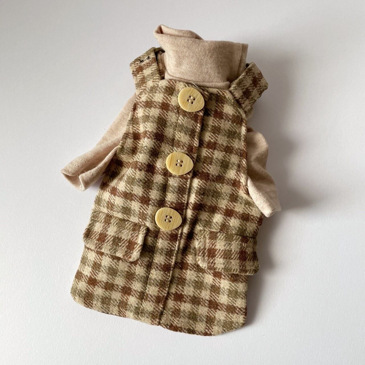 トーンオントーンの落ち着いた同系色のチェック柄で